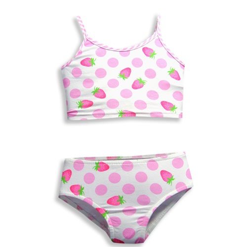 Girlfriends by Anita G - Toddler Girls 2 Piece Tankini Bathing Suit, White, Pink, Tankini Top With Spaghetti Straps, Matching Bikini Bottom, Polka Dot And Strawberry Print, 90% Cotton 10% Spandex, Made In USA, #15576[endif][if ]Girlfriends by Anita G Designer Clothes - Toddler Girls 2 Piece Tankini Bathing Suit, White, Pink Specifications