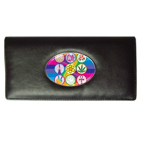 Long Wallet of 60s Icons on Rainbow Swirl (Peace Symbol, Love Sign, Mushroom, Lava Lamp, Sunflower, Marijuana Leaf, Peace Hand Sign, Peace Dove, and Ankh) (Clothing, Fashion, Dress, Events, Hairstyles, Hippies, Fads, Trends, Movement, History, Soul, Style, Disco) Review